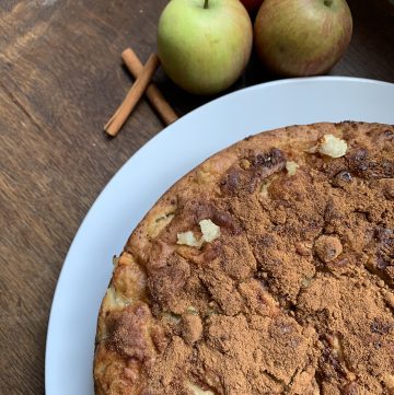 I have stepped away from the traditional French apple cake by making it gluten and dairy free, but also by using a small amount of cinnamon in the topping. At this time of year, I love to use cinnamon as much as I can, don’t you?