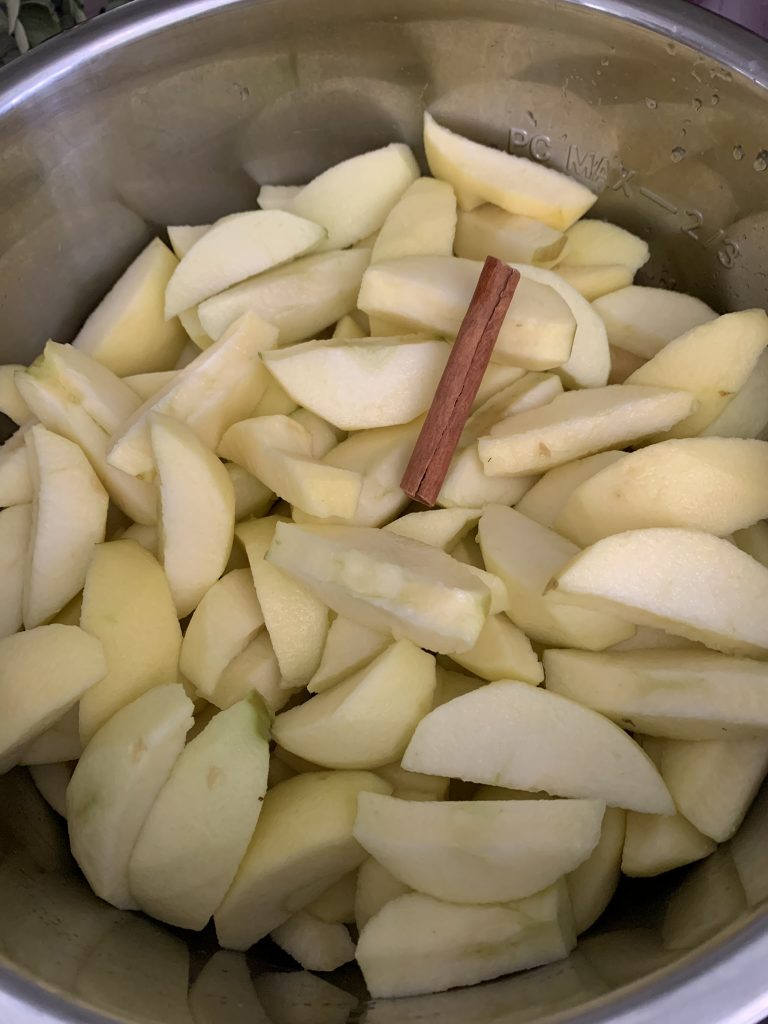 - Add your apples to the Instant Pot or saucepan with the water and cinnamon sticks (if using).